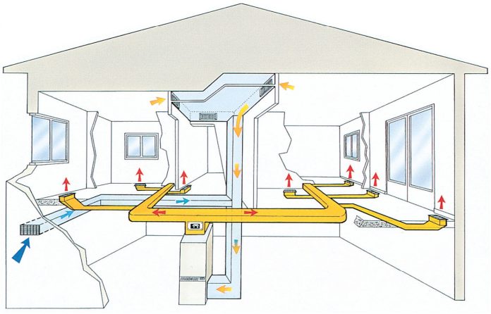 Процесс циркуляции горячего воздуха продолжается до достижения желаемой температуры в каждой зоне помещения. Воздух нагревается нагревательным устройством, затем передается через вентиляционную систему и распределяется по всему зданию.
