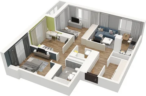 Для семьи с одним-двумя детьми три комнаты дают гибкость: спальни, гостевая или кабинет, зона для хобби. В отличие от однокомнатной, где приходится жить в многофункциональном пространстве, трехкомнатная позволяет разграничить зоны, а значит — меньше конфликтов и больше личного пространства.