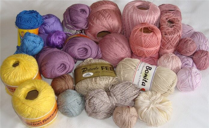 Разнообразие видов пряжи для вязания.